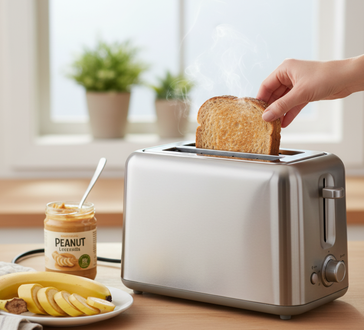 - 구운 식빵 위에 땅콩버터를 바릅니다.