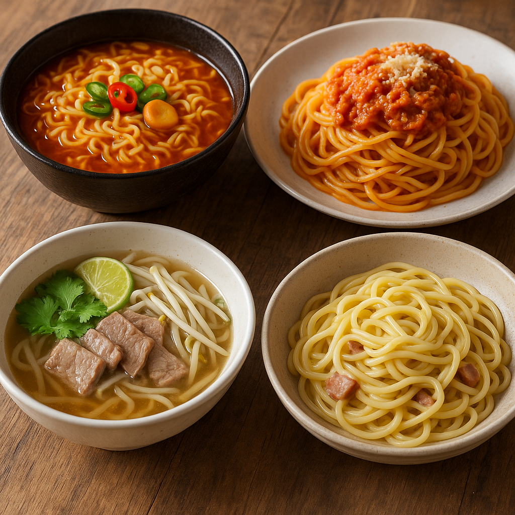 🍜 면 요리 총정리 : 라면, 파스타, 쌀국수까지!면 요리는 세계 어디서나 사랑받는 음식입니다. 국물, 소스, 재료에 따라 무궁무진한 조합이 가능한 만큼, 한 끼 식사로도 훌륭하죠. 오늘은 대표적인 면 요리 라면, 파스타, 쌀국수를 중심으로 각각의 매력을 알아보겠습니다.🍲 라면 — 간편함 속의 깊은 맛라면은 가장 대중적이면서도 다양한 변주가 가능한 면 요리입니다.뜨거운 국물에 쫄깃한 면발, 여기에 고추기름, 김치, 계란, 치즈 등 다양한 토핑을 추가하면 각자의 스타일로 즐길 수 있습니다.한국식 라면 : 매콤하고 진한 국물 맛이 특징.일본식 라멘 : 돈코츠, 쇼유, 미소 등 국물 베이스가 다양.중화풍 라면 : 불맛이 살아 있는 볶음라면 형태로 인기가 많음.라면은 간단하지만, 조리법 하나로도 전혀 다른 ..